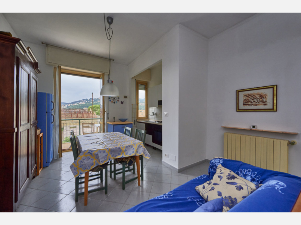 Composto da: ingresso in cucina abitabile con divano (no letto), sala con divano letto e puff letto singolo, camera con letto matrimoniale, bagno con vasca/doccia, baconata a ovest in cucina.